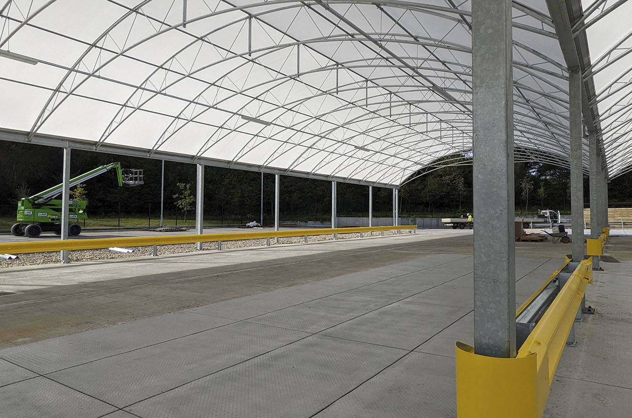 The elevated design solution allowed the flood attenuation volume that the original lowered dock area was providing to the site, to be retained. A lightweight canopy was then introduced over the top of the area to provide protection to the loading operations for the outgoing goods.